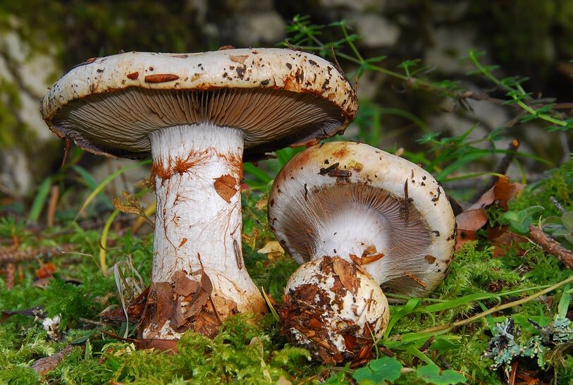 Cortinarius anserinus - Buchen Klumpfuss ( Velenovsky 1920 ) Henry 1943 Key Words: Basidiomycetes - Agaricales - Cortinariaceae - Cortinarius = Haarschleierling Mykorrhizapilz - Symbiosepartner: Buche über kalkhaltigen Böden Gefährdung: verbreitet und nicht gefährdet. Bemerkungen: eine der häufigsten Phlegmatien. Cortinarius anserinus ist durch seine olivgetönte, bitter schmeckenden Huthaut und dem Violett der Lamellen und der Stielspitze gut zu erkennen. Das Violett in den Lamellen kann aber sehr flüchtig sein. Fundort: Prenovel ( französisches Jura )
