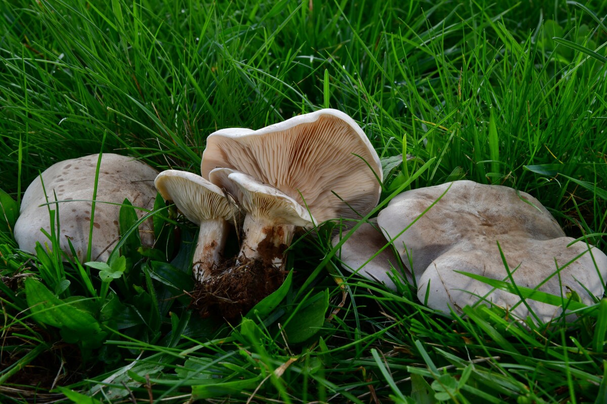 Lepista panaeolus - Marmorierter Rötelritterling ( Sowerby 1799 : Fr.1821 ) Patouillard 1887 Key Words: Basidiomycetes - Agaricales - Tricholomataceae - Lepista = Rötelritterling Saprobiont - Vorkommen: auf Wiesen, Viehweiden, grasigen Waldlichtungen und auf Rindenmulch. Gefährdung: Gilt im Saarland als stark gefährdet. ( RL 2 ). Auch in den anderen Bundesländern zeigt ist die Art eine deutliche Rückgangstendenz. Sie hat in fast allen Ländern Eingang in die roten Listen gefunden. Bemerkungen: Lepista rickenii wird von einigen Autoren als eigenständige Art angesehen. Krieglsteiner, Ludwig und einige andere Autoren sehen keine überzeugende Unterschiede um eine Separierung aufrecht zu erhalten. Sie wird von ihnen synomym zu Lepista paneola geführt. Die abgebildete Kollektion könnte auf den ersten Blick mit Clitocybe nebularis verwechselt werden. Diese besitzt aber niemals die dunkleren,verstreut oder gar zoniert angeordneten Flecken auf dem Hut. Der nebelgraue Trichterling besitzt glatte, Lepista paneola hingegen mit groben, fast halbkugeligen Wärzchen besetzten ellipsoide Sporen. Fundort: Homburg - Saarland