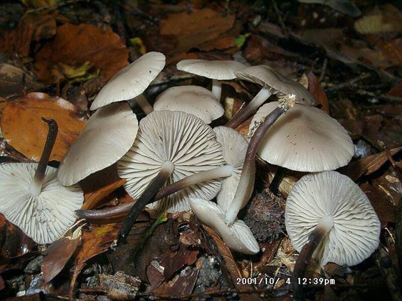 Marasmius wynnei - Violettstieliger Schwindling Berkely et Broome 1859 Key Words: Basidiomycetes - Agaricales - Tricholomataceae - Marasmius = Schwindling Saprobiont - Vorkommen: Buchenwälder auf Kalk, auf morschem, oft vergrabenem Holz. Gefährdung: häufig und nicht gefährdet Bemerkungen: die Fruchtkörper der hier vorgestellten Art weisen nicht immer den in der Literatur beschriebenen violettlichen Hut auf. Der Standort auf morschem Buchenholz, sein oft massenhaftes Vorkommen und seine Stielfärbung weisen dann doch in die Richtung - violettlicher Schwindling - . Fundort: Zweibrücken - Pfalz