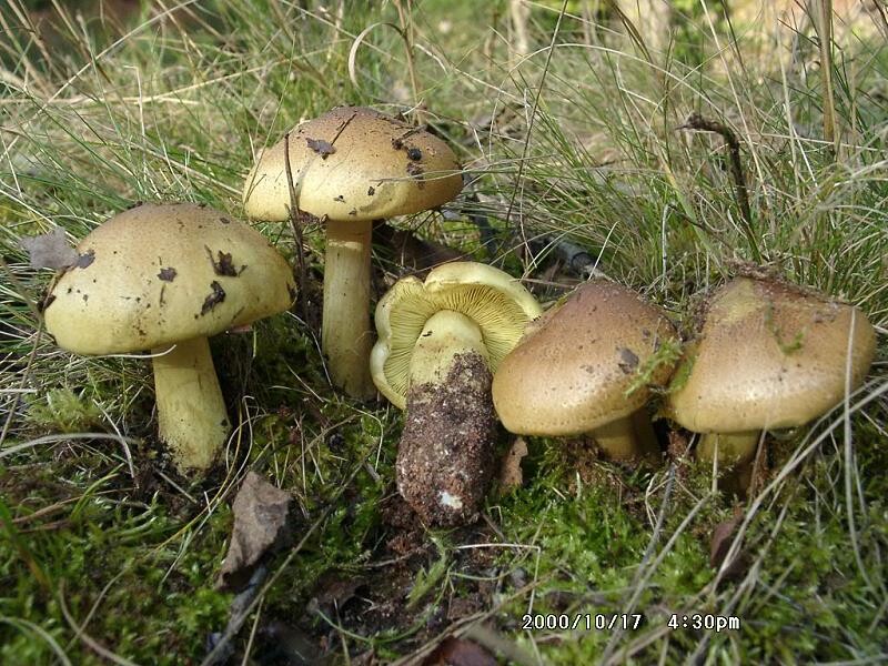 Tricholoma equestre - Grünling, Gelbfleischiger Grünling ( L.1772 : Fr.1821 ) Kummer 1871 Key Word: Basidiomycetes - Agaricales - Tricholomataceae - Tricholoma = Ritterling Mykorrhizapilz - Symbiosepartner: Espe, Birke, Buche, Kiefer. Gefährdungsgrad: In der gesamten Bundesrepublik in RL 3 ( gefährdet ) geführt. Ich konnte in den letzten Jahren im Raum Bexbach viele neue Standorte von T. equestre entdecken. Die Art scheint sich im Saarland weiter auszubreiten. Anmerkungen: Die Art wurde vom Gesetzgeber unter absoluten Schutz gestellt. Aus Unwissenheit über die Existenz absolut geschützter Pilze, wird der Grünling von vielen Sammlern auch heute noch zu Speisezwecken gesammelt. In jüngster Zeit ist T. equestre allerdings in den Verdacht geraten eine Muskelerkrankung ( Rhabdomyolysis ) zu verursachen, die in Frankreich bei drei Personen tödlich endete. Alle bisher Erkrankten gaben an, ca. 1 Woche zuvor größere Mengen Grünlinge gegessen zu haben. Laborversuche scheinen die Gefahren die durch den Verzehr von T.equestre ausgehen können, zu bestätigen. Ich rate daher dringenst von jeglicher " küchentechnischen " Verwendung dieser Art ab. Fundort: Bexbach - Saarland