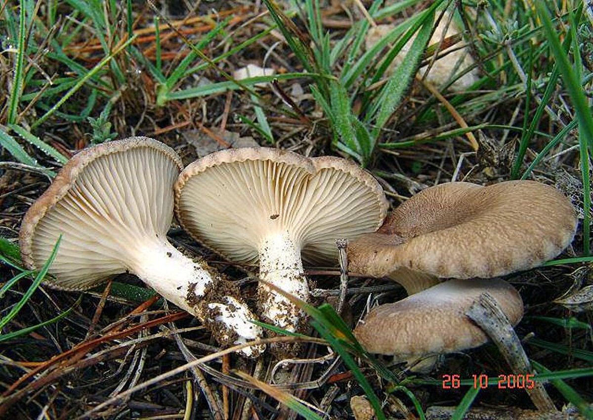 Pleurotus eryngii - Brauner Kräuterseitling ( DeCondolle 1805 : Fr. 1821 ) Quélet 1872 Key Words: Basidiomycetes - Aphyllophorales - Polyporaceae - Pleurotus = Seitling Saprobiont - Vorkommen: an abgestorbenen Wurzeln des Feld - Mannstreu oder verschiedener Laserkräuter. Nach neueren Erkenntnissen neigt er auch zum Parasitismus befällt aber nur schon sehr stark vorgeschädigte Pflanzen. Gefährdung: in den natürlichen Verbreitungsgebieten meist sehr häufig und nicht gefährdet. In Deutschland dürfte er Mangels geeigneter Standorte wesentlich seltener sein. Bemerkungen: bei der Cortinarientagung 2005 in Morella habe ich diese Art zum ersten mal in freier Natur gesehen. Er wirkt bedeutend kleiner und schmächtiger als die Kräuterseitlinge aus Zuchtbetrieben. Fundort: bei Castel de Cambres - Spanien