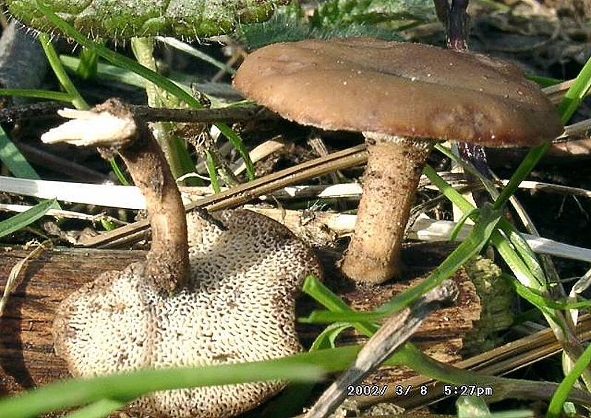 Polyporus brumalis - Winter Stielporling ( Pers 1794 : Fr. 1821 ) Quélet 1886 Key Words: Basidiomycetes - Aphyllophorales - Polyporaceae - Polyporus = Porling Saprobiont - Vorkommen: an abgefallen Ästen oder Stünken zahlreicher Laubholzarten. Meist an Buche, Erle und Weide. Laut Literatur sehr selten auch an Nadelholz. Gefährdung: in ganz Deutschland verbreitet und nicht gefährdet Bemerkungen: er ist ganzjährig, jedoch bevorzugt im Winterhalbjahr anzutreffen. Im Frühjahr kann es zu Verwechslungen mit dem ähnlichen Maiporling ( Polyporus ciliatus ) kommen. Dieser besitzt aber kleinere, wesentlich engerstehendere, mit bloßem Auge kaum wahrnembare Poren. Fundort: Bexbach - Saarland