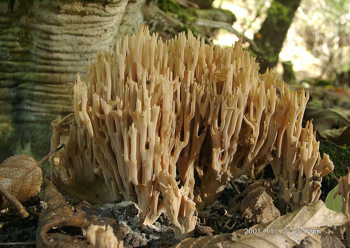 Ramaria stricta - Steife Koralle ( Pers.1797 : Fr. 1821 ) Quélet 1888 Key Words: Basidiomycetes - Aphyllophorales - Ramariaceae - Ramaria = Koralle Saprobiont - Vorkommen: auf totem oft vergrabenem Holz verschiedener Laubbäume, vorzugsweise Buche. Gefährdung: häufig und nicht gefährdet. Bemerkungen: Ramarien sind eine äusserst schwierig zu bestimmende Pilzgattung. Für eine korrekte Bestimmung ist in den meisten Fällen ein Mikroskop und Spezialliteratur unerlässlich. Fundort: Bexbach - Saarland