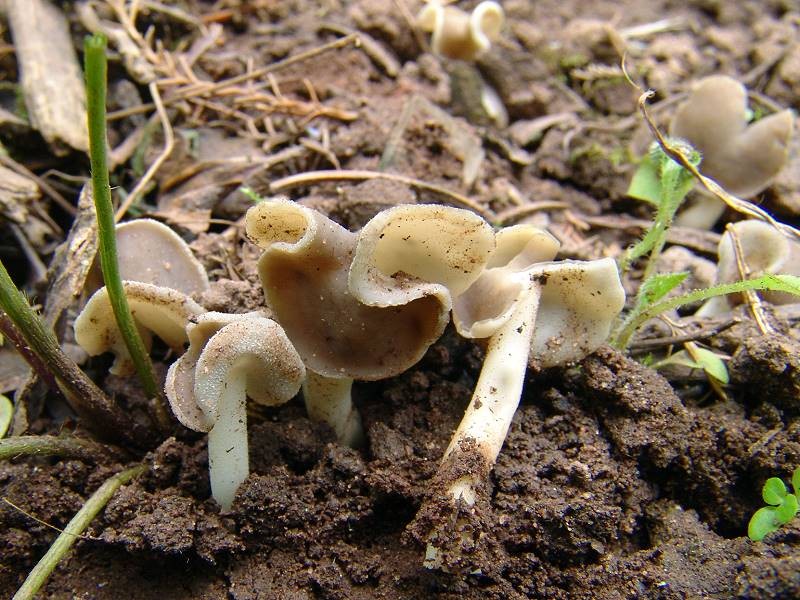 Helvella_ephippium Helvella ephippium - Sattel Lorchel Léveillé 1841 Key Words: Ascomycetes - Pezizales - Helvellaceae - Helvella = Lorchel Saprobiont - Vorkommen: in und ausserhalb von Wäldern. Gerne an feuchten und schattigen Stellen kalkhaltiger Böden. Gefährdung: diese recht seltene Helvella ist in vielen Bundesländern auf der Liste der gefährdeten Arten zu finden. im Saarland war die Art bisher nicht nachgewiesen. Bemerkungen: die abgebildetet Kollektion stammt aus dem selben Areal , das sich schon für Helvella costifera beschrieben habe. Die sehr kleinen, dem Boden ähnlich gefärbten Fruchtkörper waren leicht zu übersehen. Nur den aufmerksamen Blicken der Gartenbesitzerin war es zu verdanken, dass ich die Pilze überhaupt ablichten konnte. Fundort: Blieskastel - Saarland