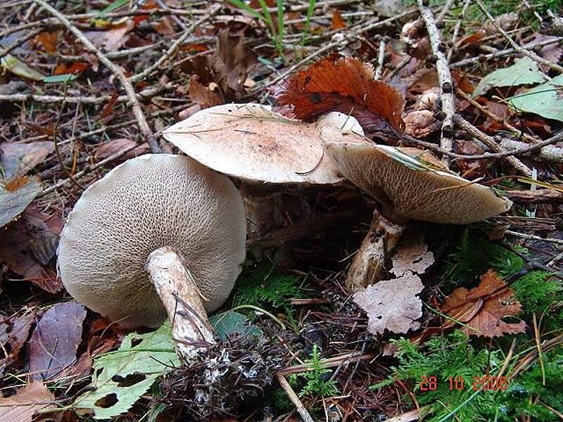 Suillus viscidus - Grauer Lärchenröhrling ( L. 1753 ) Roussel 1796 Klassifikation: Fungi, Dikarya, Basidiomycota, Agaricomycotina, Agaricomycetes, Agaricomycetidae, Boletales, Suillaceae, Suillus Mykorrhizapilz - Symbiosepartner: ausschließlich bei Lärche. Gefährdung: in Deutschland verbreitet und nicht gefährdet. Bemerkungen: triste , meist graue Farben auf Hut und Röhren und das weißliche Velum am Hutrand jüngerer Exemplare machen den Pilz leicht kenntlich. Fundort: Bottenbach - Pfalz