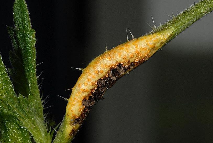 Puccinia_urticata Puccinia urticata F.Kern 1917 Klassifikation: Fungi, Dikarya, Basidiomycota, Pucciniomycotina, Pucciniomycetes, Pucciniales, Uredinineae, Pucciniaceae, Puccinia Aezienwirt: Urtica dioica - Große Brennessel Bemerkungen: Puccinia urtica benutzt die Große sowie die kleine Brennessel als Zwischenwirt und bildet auf ihnen seine 0-Pyknien und I - Aezien aus um dann auf seinen Telienwirten der Gattung Carex ( Seggen ) seine Entwicklung mit II-Uredien und III-Telien abzuschließen. Die recht ansehnlichen und auffälligen Aeziensporenlagen finden sich an den Blättern sowie an den Stängeln der Pflanzen und sind eigentlich nicht zu übersehen. Fundort: Hinterzarten - Baden Württemberg