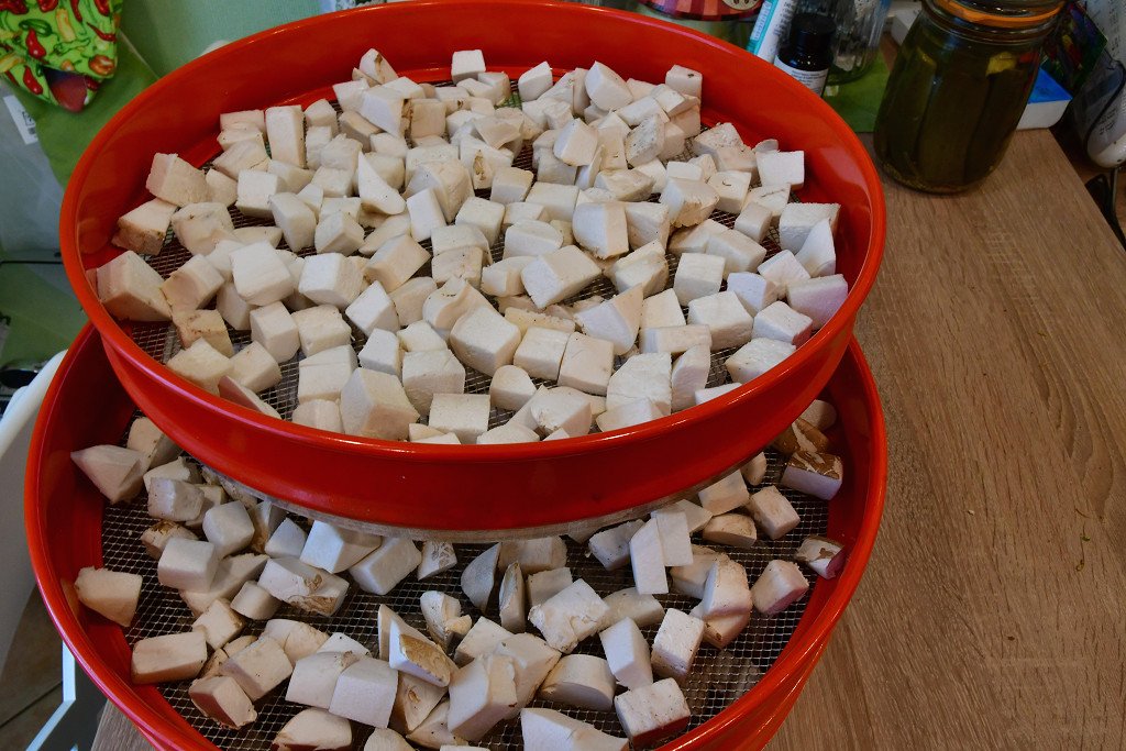 Gereinigt und in Würfel geschnitten landeten sie auf dem Dörrex.